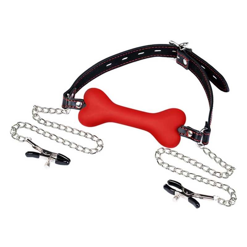 Трензель-кость с зажимами на соски "Theatre" красный